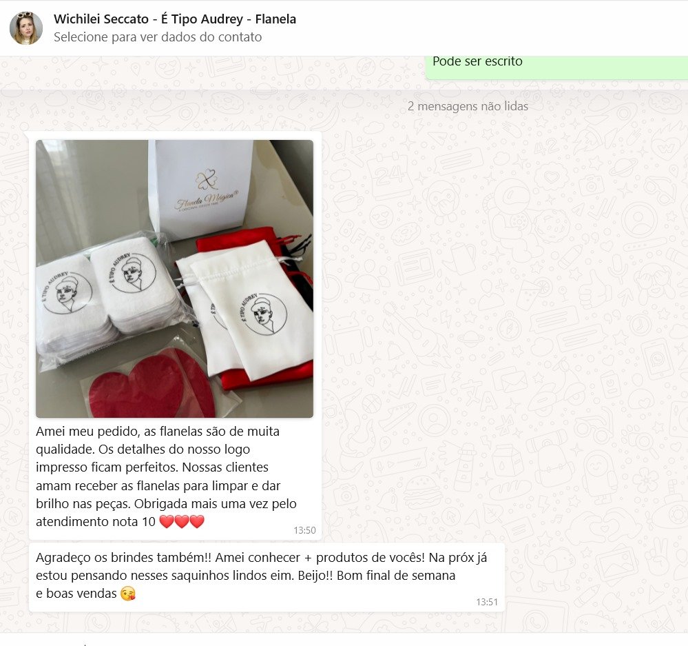 Você pode enviar seu logotipo através do nosso WhastApp (11) 92011-8954 ou através do nosso e-mail: contato@lojaflanelamagica.com.br